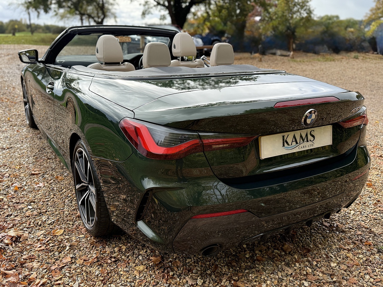 For sale is a stunning 2021 BMW 4 Series 430i M Sport Convertible in Sanremo Green metallic. This sleek and stylish car has had 2 owners and comes with a low mileage of only 11800. The 2.0 petrol engine delivers a powerful 242 BHP and can reach a top speed of 155 mph with an impressive acceleration of 6.4 seconds.